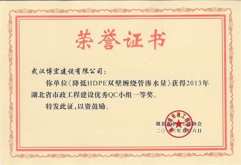 2012年度全國(guó)市政工程建設(shè)QC小組活動(dòng)優(yōu)秀企業(yè)