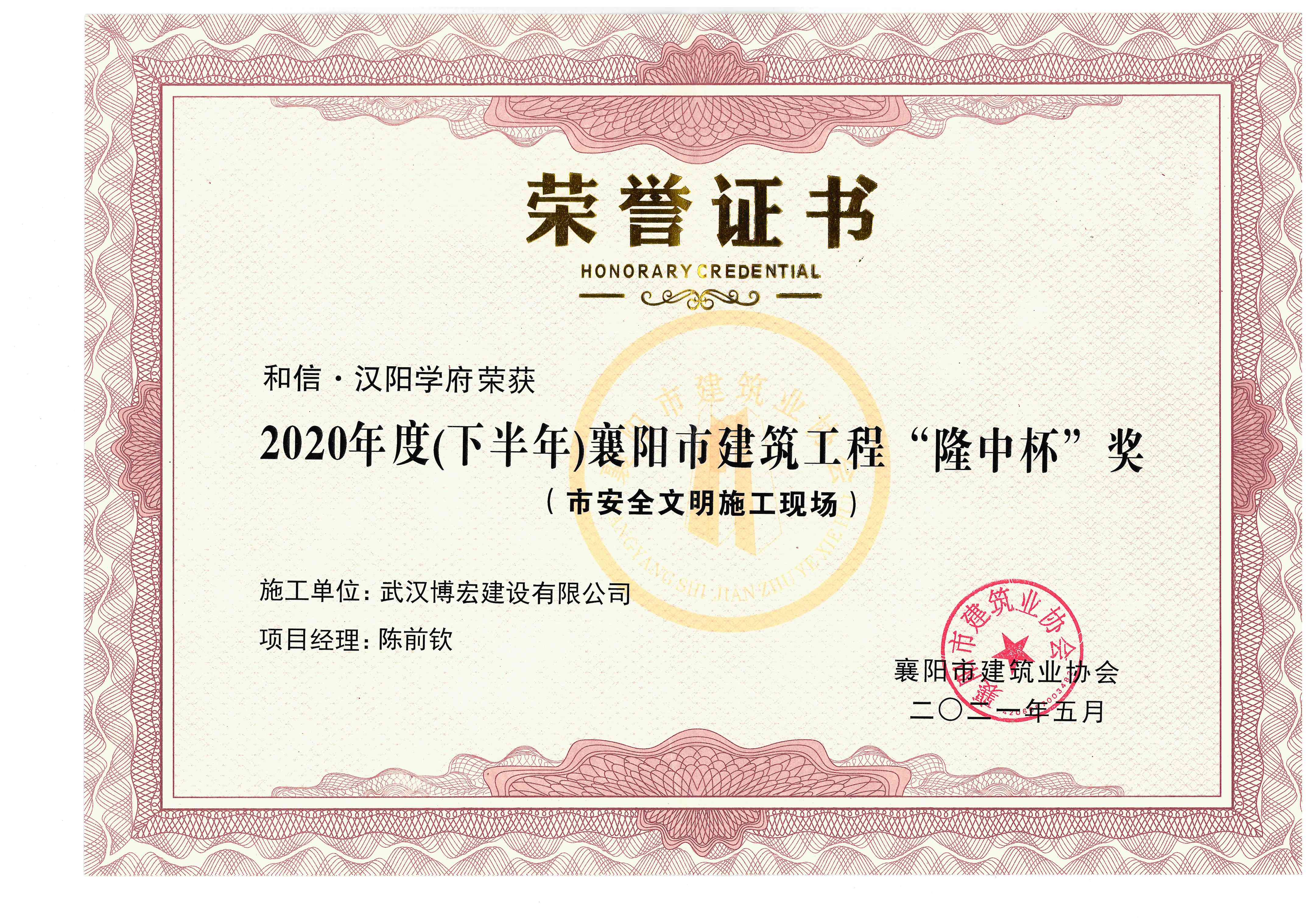 和信·漢陽學(xué)府2020年度(下半年)襄陽市建筑工程“隆中杯”獎(jiǎng)(市安全文明施工現(xiàn)場(chǎng)