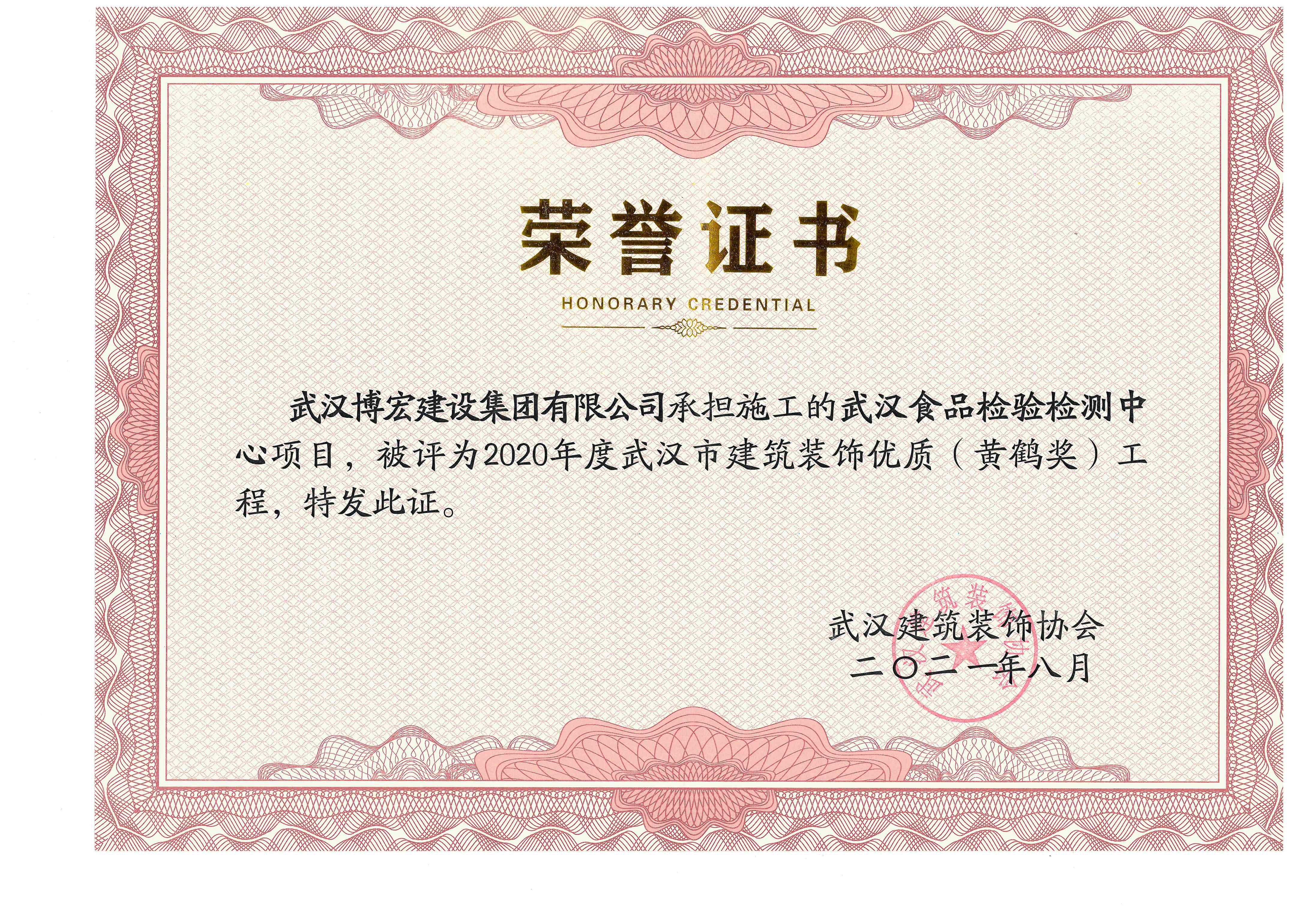 2021年度湖北省優(yōu)良建筑裝飾工程(食檢中心)
