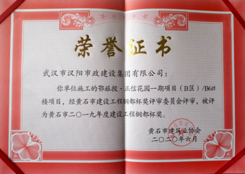 2019年度建設(shè)工程銅都杯獎(jiǎng)(鄂旅投·正信花園一期項(xiàng)目(B區(qū))B6#樓項(xiàng)目