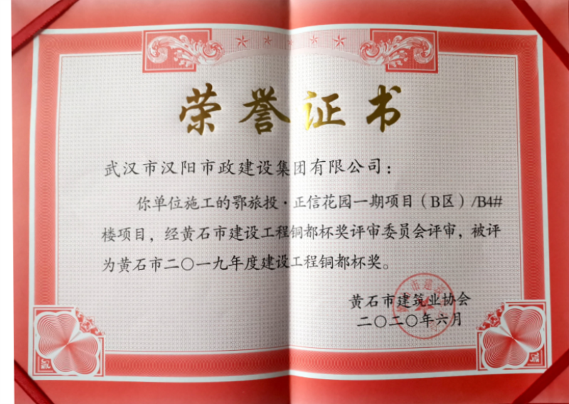 2019年度建設(shè)工程銅都杯獎(jiǎng)(鄂旅投·正信花園一期項(xiàng)目(B區(qū))B4#樓項(xiàng)目