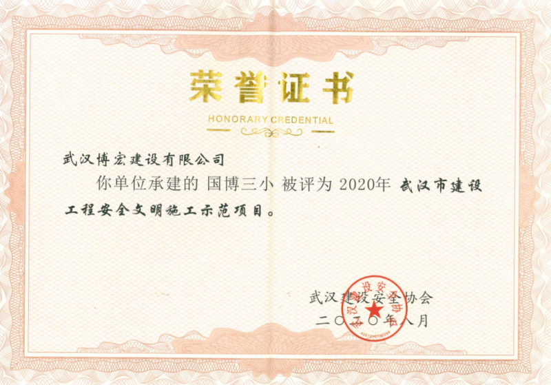 2020年上半年武漢市建設(shè)工程安全文明施工示范項(xiàng)目(國(guó)博三小)