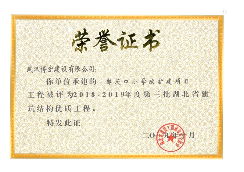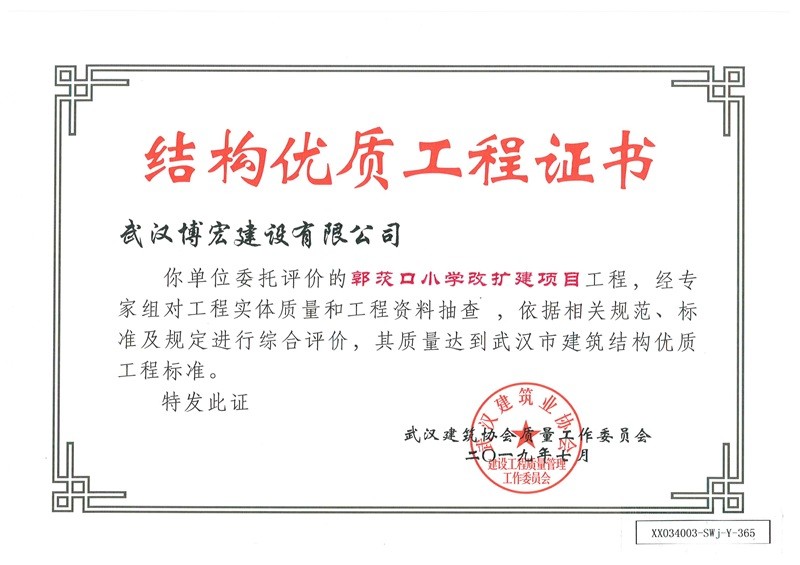 結(jié)構(gòu)優(yōu)質(zhì)工程證書(郭茨口小學(xué))