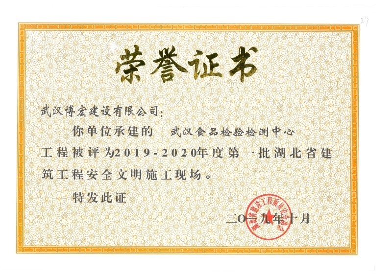 2019-2020年度第一批湖北省建筑工程安全文明施工現(xiàn)場(武漢食品檢驗(yàn)檢測中心)