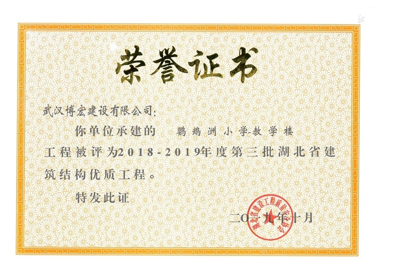 2018-2019年度第三批湖北省建筑結(jié)構(gòu)優(yōu)質(zhì)工程(鸚鵡洲小學(xué)小學(xué)-教學(xué)樓)