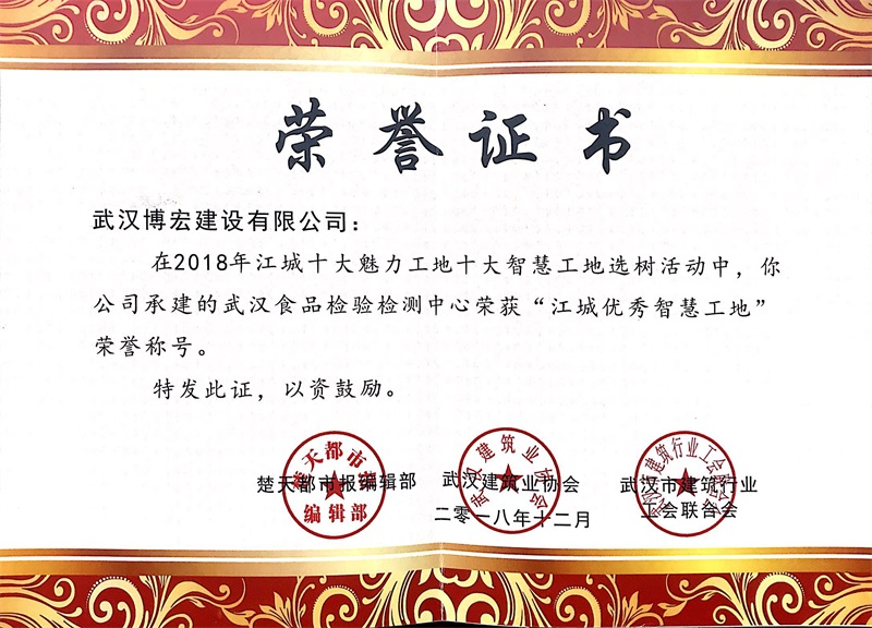 2018年度江城優(yōu)秀智慧工地(食檢中心)