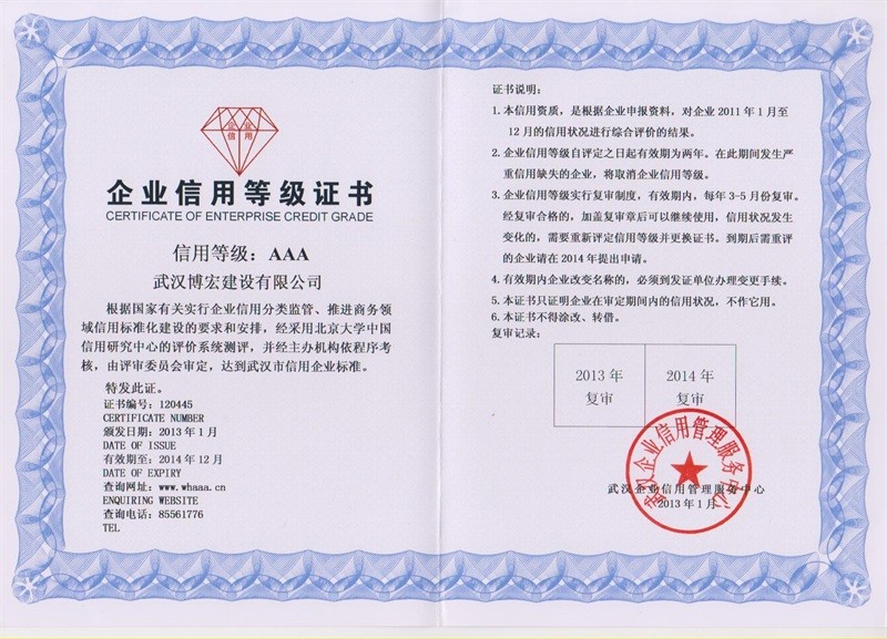 企業(yè)信用等級證書AAA