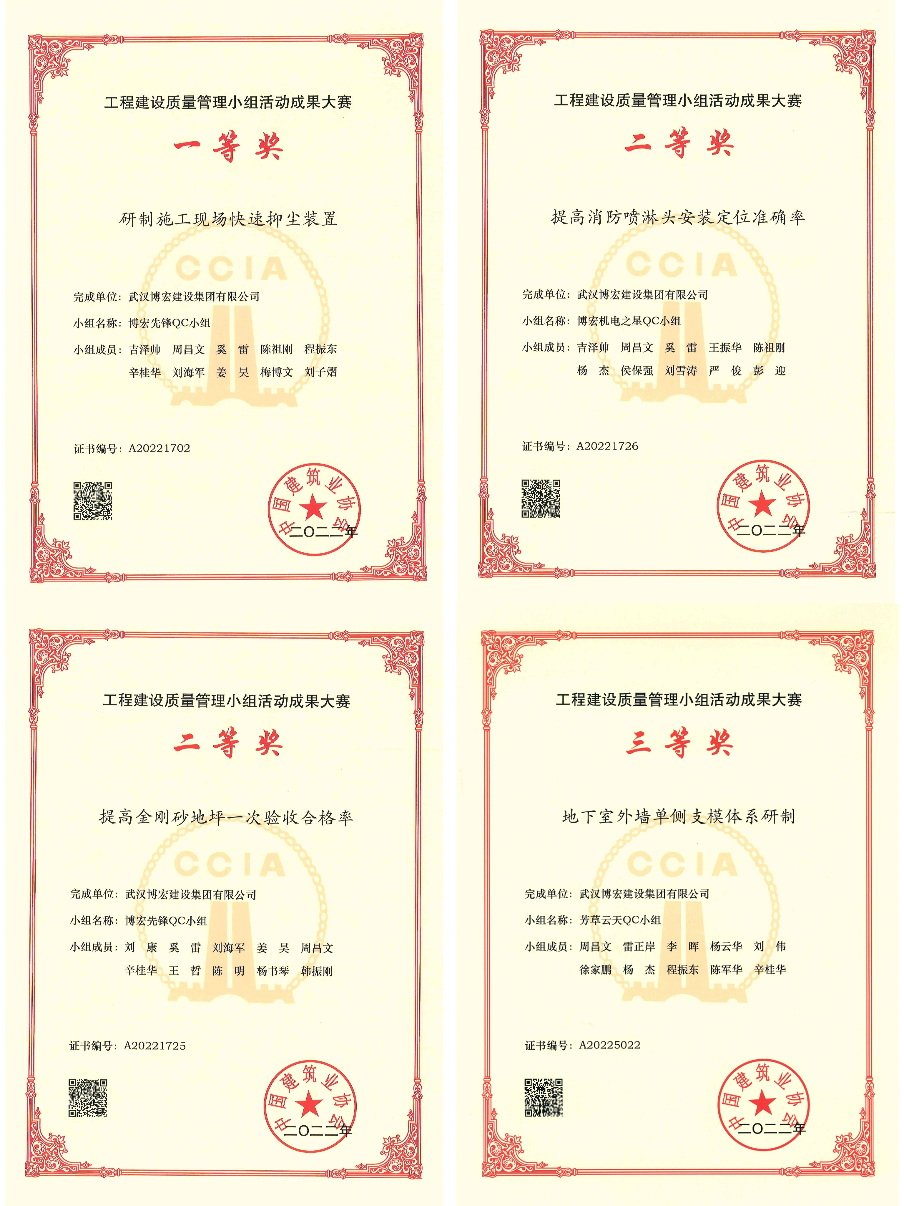 近日,由中國建筑業(yè)協(xié)會(huì)主辦的“2022年工程建設(shè)質(zhì)量管理小組活動(dòng)成果大賽”獲獎(jiǎng)名單公布,博宏建設(shè)集團(tuán)榮獲4個(gè)獎(jiǎng)項(xiàng)。