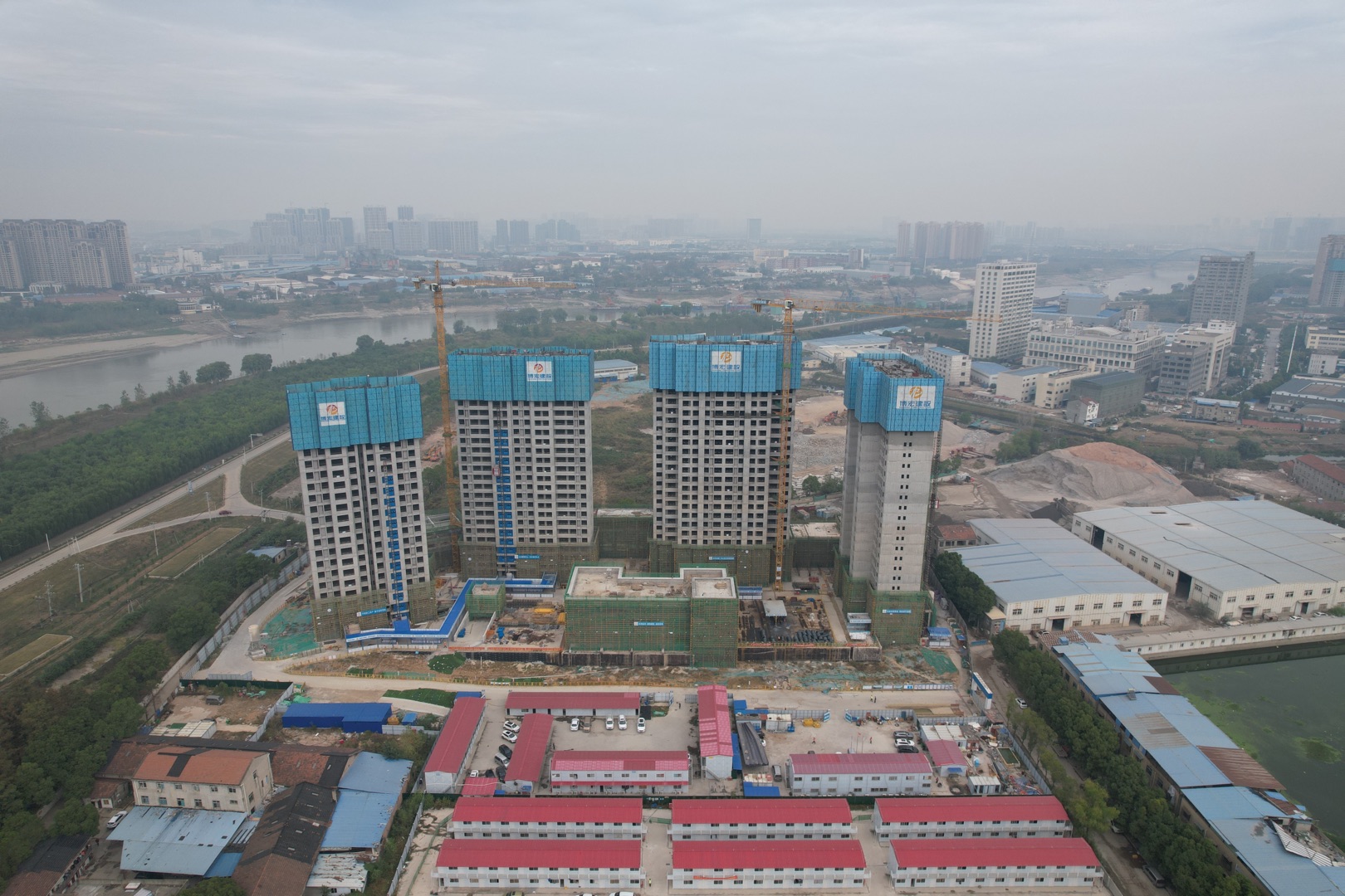 ? ? ? ?四臺村還建房工程(B地塊)EPC項目位于湖北省武漢市漢陽區(qū)金鑫路與什湖路交叉口,由1~4#樓(25層~42層高層住宅)、幼兒園(3層)組成。各棟單體由整體地下室相連,地下室為2層,局部為1層,總建筑面積94586.53㎡。項目建成后將極大地提高周邊居民的生活質(zhì)量、改善居住環(huán)境。本次封頂樓棟為2#樓,層數(shù)33層,剪力墻結(jié)構(gòu),建筑高度99.6m。?