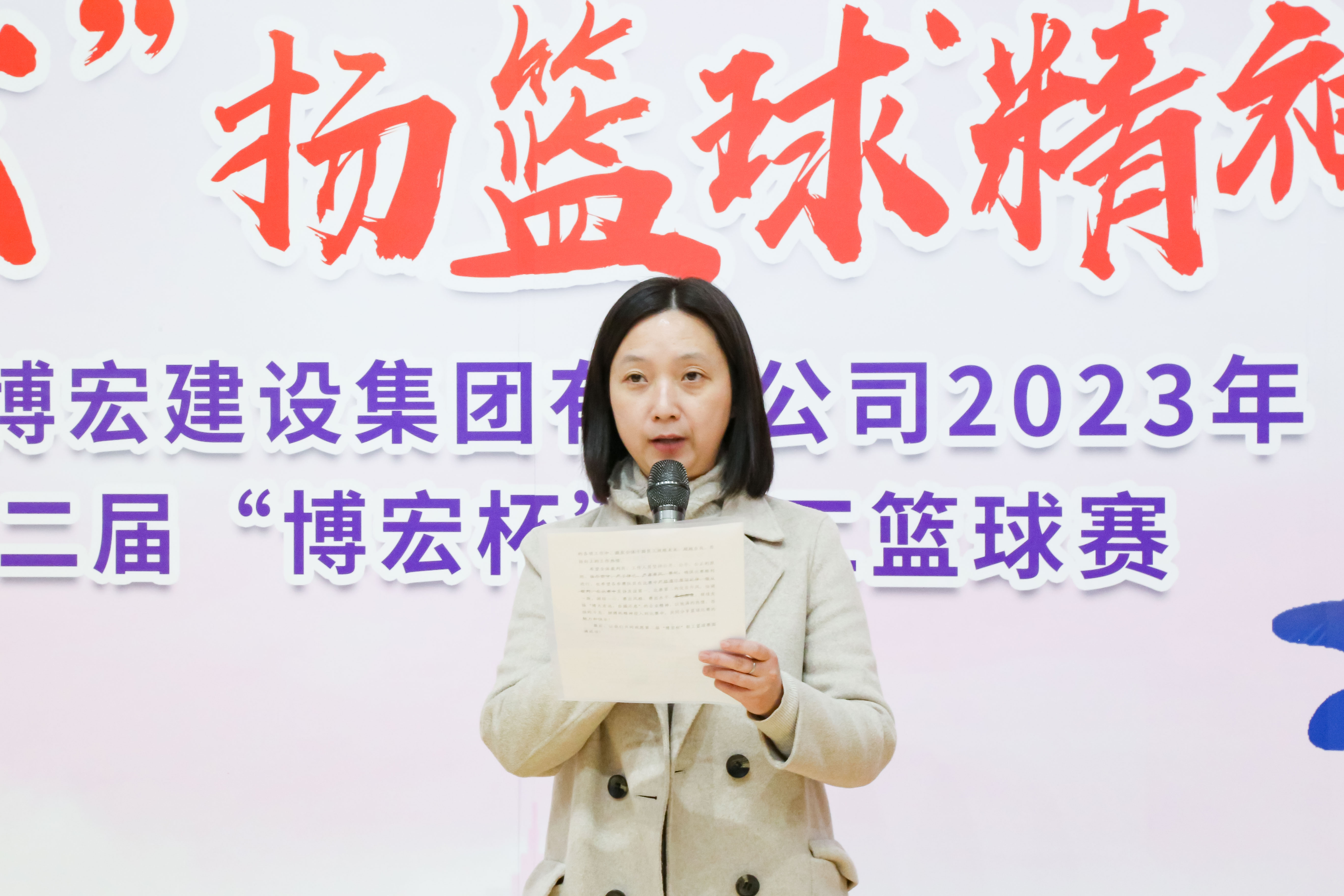 博宏建設(shè)集團(tuán)黨委副書記、工會主席郭一清為開幕式致辭。她希望全體運(yùn)動員以此次比賽為契機(jī),外強(qiáng)體魄、內(nèi)修素養(yǎng),把頑強(qiáng)拼搏、勇攀高峰、精誠團(tuán)結(jié)、永不言棄的籃球精神轉(zhuǎn)化為干事創(chuàng)業(yè)、攻堅克難的不竭動力,不忘初心、接續(xù)奮斗,以昂揚(yáng)向上、奮發(fā)有為的精神狀態(tài)為引領(lǐng),助推公司更好更快發(fā)展。最后她預(yù)祝本次籃球賽取得圓滿成功。