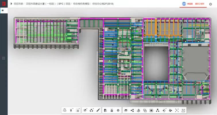 研究生期間彭迎研究的方向是BIM技術土建方向,但工作需要盡快上手的是BIM技術機電方向,一時讓她有點手足無措,“有問題先嘗試解決,辦法總比困難多”踏實肯干的她選擇了迎難而上,白天她跟著師傅們不厭其煩地穿梭于現(xiàn)場的各個樓棟,在工作過程中多看、多問、多記、多學,晚上回到宿舍,她通過閱讀大量BIM機電方向相關書籍以及上網課等方式自學相關知識,有時為了弄懂一個問題常常奮戰(zhàn)到深夜。從入門到逐漸架構起整個知識體系,彭迎經歷了半年的時間。在自學期間,她遇到了很多困難和瓶頸,但因為熱愛,從未想過放棄。“那段時間很累但是也很充實,每天都能學習到新的東西,讓我對機電的了解越來越深入,也越發(fā)體會到了BIM的魅力。看著自己繪制的BIM圖紙粘貼在了施工墻上,工人按照圖紙可以搭建出符合標準的砌體,心中的喜悅是無法用語言描述的。”回憶起那段時光時,她臉上總是帶著微笑。理論上的認真鉆研,現(xiàn)場中的建模實踐,彭迎的專業(yè)技術在不懈努力中愈見純熟,在負責總部大樓地上部分機電BIM工作過程中考取了BIM二級設備證,也和同事們一起獲得了多項國家級、省市級BIM獎項,熱愛與進取讓她一次次品嘗到了成功的碩果。