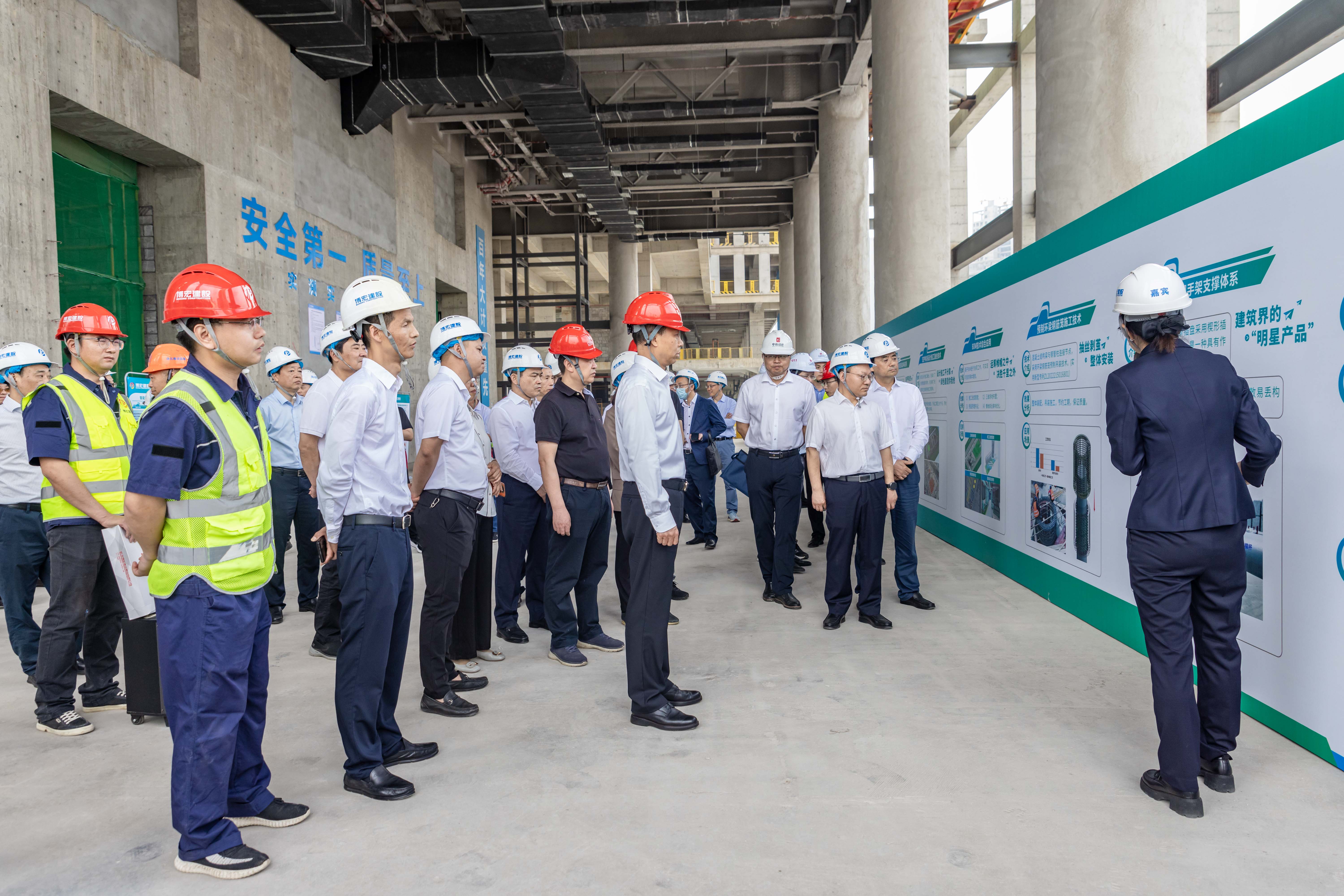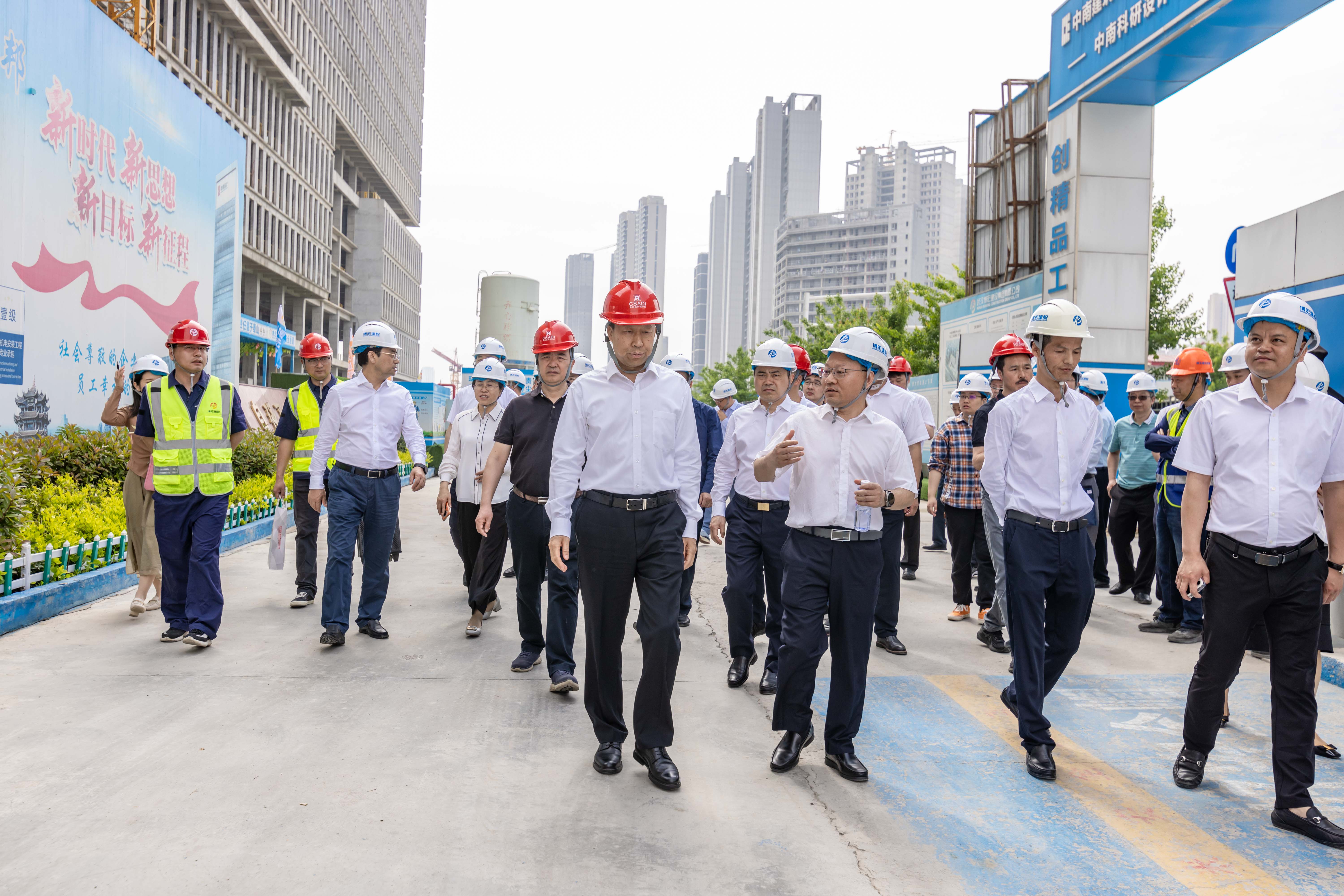 劉雪榮一行首站參觀了中南科研設(shè)計(jì)中心項(xiàng)目,該項(xiàng)目是“湖北省綠色建造智能建造品質(zhì)建造科技創(chuàng)新融合試點(diǎn)項(xiàng)目”,在推廣綠色建造創(chuàng)新關(guān)鍵技術(shù)上積極探索“四新”(新技術(shù)、新工藝、新材料、新設(shè)備)技術(shù)應(yīng)用,也是踐行綠色建筑理念的藍(lán)本